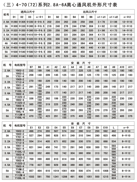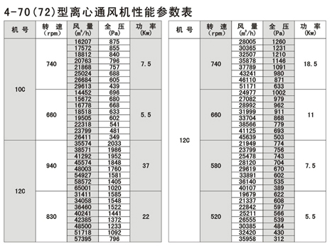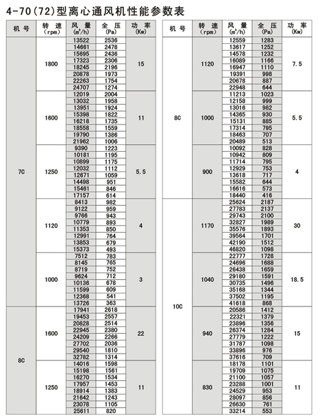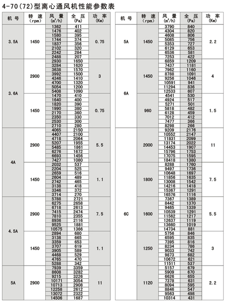 4-72型不锈钢离心风机风量:930~154000m3/h,风压170~2950Pa;4-79型通风机共20种机号,风量1100~438000 m3/h,风压230~3320Pa,用户可根据不同参数选择。 本系列风机广泛应用于各类大中型工厂和高级民用建筑、大型广场输入和输出气体的室内换气通风。如客户有特殊要求,本公司则可以根据用途不同,选择不同材料制作成防爆、防腐、耐高温型风机,以满足广大用户的需要。