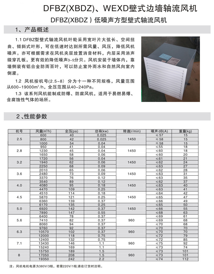 DFBZ型不锈钢方形壁式风机简称DFBZ系列风机,它是采用低噪声风机专用电机直联传动;整机制成方形,外形美观,墙体预留方孔安装方便; 出风口装有自垂百叶, 以防上室外雨水和自然风向室内倒灌:具有明显的安装牢固、振动小、噪声低、运行平稳等优点,广泛适用于工矿企业、民用建筑、体育馆、畜牧业、各种娱乐场所的壁式排风。 DFBZ-I型为采用内转子电机直联传动结构形式、DFBZ-II型采用内转子电机、皮带传动结构形式,DFBZ—III型为采用外转子电机直联传动结构形式。可根据用户要求制成防腐防爆型。