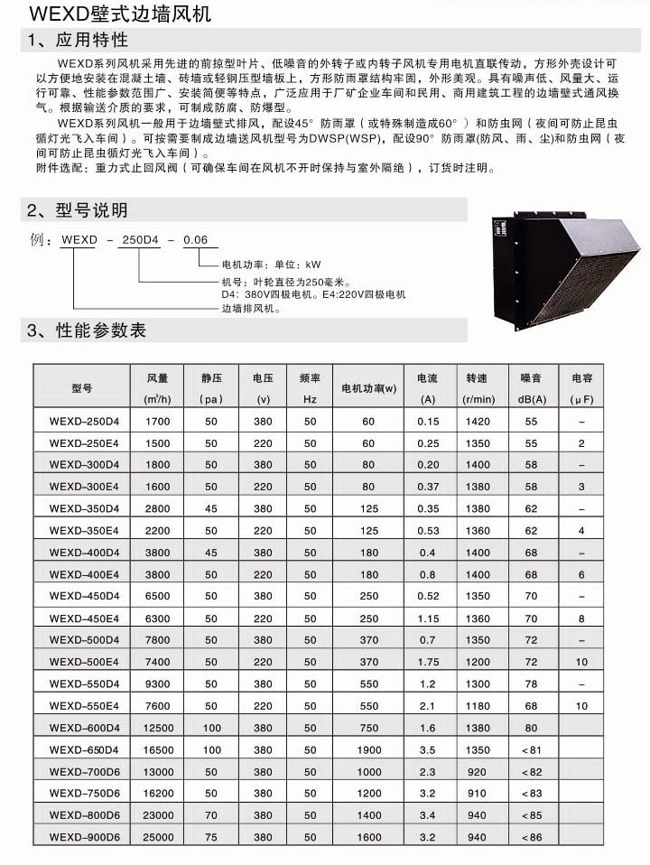 WSP不锈钢边墙送风机采用前掠型叶片、低噪音的外转子或内转子风机专用电机直联传动,方形外壳设计可以方便地安装在混凝土墙、砖墙或轻钢压型墙板上,方形防雨罩结构牢固,外形美观。具有噪声低、风量大、运行可靠、性能参数范围广、安装简便等特点,广泛应用于厂矿企业车间和民用、商用建筑工程的边墙壁式通风换气。根据输送介质的要求,可制成防腐、防爆型。